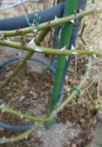 今日は暖かかったので庭木に鶏糞肥料をやったりバラのつるを巻き直したら手が血だらけ。