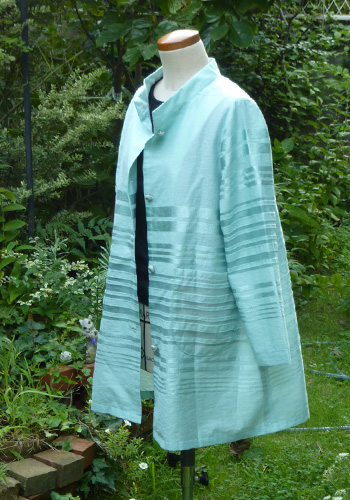 そんなわけで青磁色の、そして私たちの肌の色に美しく映える色合いのオシャレコートです。