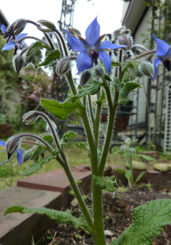 年末に駐車場から拾い上げてきたボリジがすっかり大きくなり開花しました。