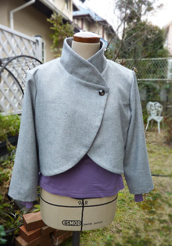 ラベンダー色のウール地も持っていますがそこはちょっとわきまえて、無難なグレーにしました。
