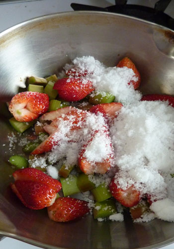 ルバーブの茎は煮ると酸っぱくなるのですが、少し土臭いので果物と合わせて、それもイチゴが本当によく合うのです。