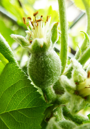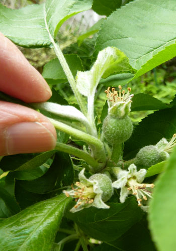 リンゴがやっと花を咲かせ、なんと可愛い実が・・・。
