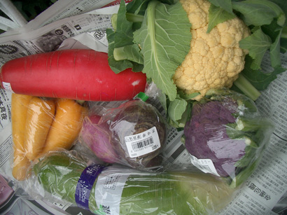 これは昨日、駅前のスーパーと、すぐそばの酒屋の店先で買ってきた野菜です。鮮やかでしょ?
