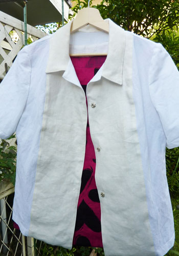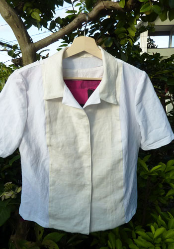 上のと同じ形でストレッチの麻地にラメの麻を合わせました。