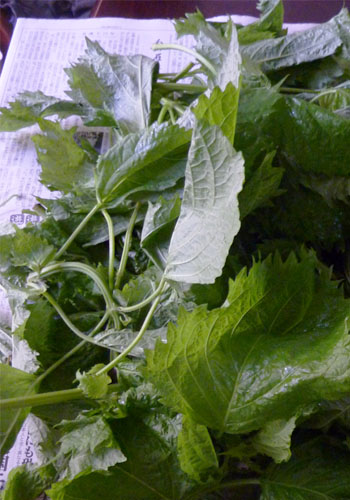 この時期になるとゴッソリ山盛りで売られているシソの葉。