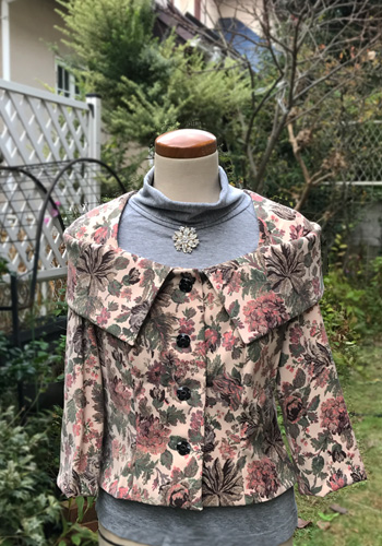 大きな襟が特徴ですが、実はこの襟巾でぐるりと肩、背中を支えてくれている感じで、とっても着やすいのですよ。