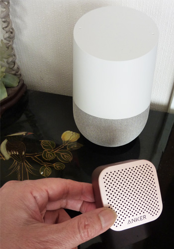 私自身は台所仕事や、ミシン仕事をしながら音楽を聴くのに無線のミニスピーカーを買いました。アマゾンでセールだったので。
