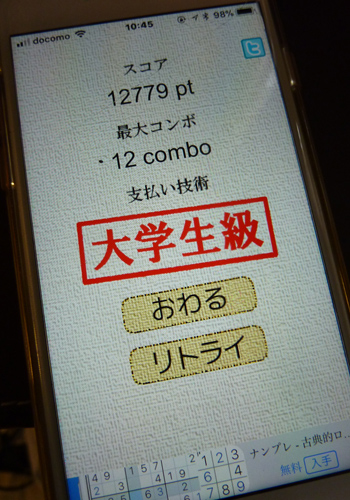ゲームには添削指導がないのでどうかしらと思いつつ続けていたら、けさなんと