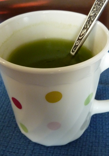 スプーン1杯の抹茶、はちみつ、レモン半コぶんのしぼり汁。