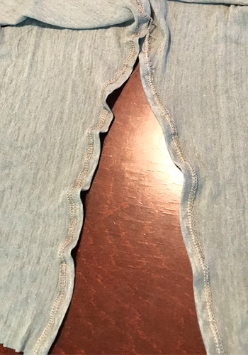 グリーンのコットンニットがあったので作り始めたのですが、バイアス仕立ての為、前立てをまっすぐに縫うだけでもビロビロに・・・えっなに?難し~い。