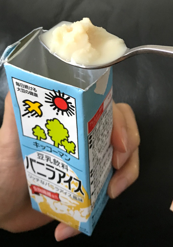 豆乳を凍らせてシャーベットにして食べると美味しいです。