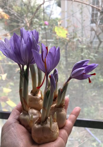 サフランは大変な肥料食いで、収穫後の畑は連作はむづかしいのですって。