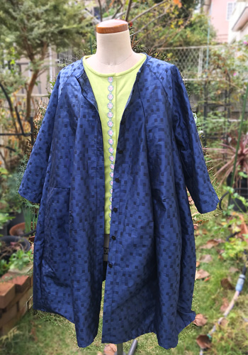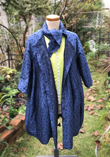 青く艶やかなこの布地を見たとき、ぜひこれで作ってみたいと思ったのです。