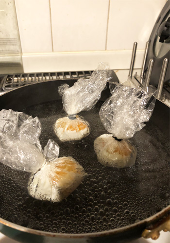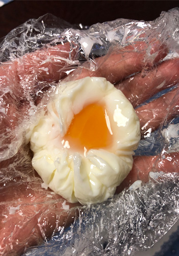 ポーチドエッグは作るのにちょっと緊張しますが、まったく失敗なく、しかもラップのまま作りおけるのです。