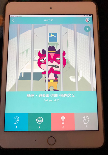 私は朝晩20分づつ学習しているのですが、自分のリーディングを録音してすぐに先生のお手本と聞き比べられること、先生の解説が文字、耳からと両方あること、ごほうびの音楽付きのスタンプがもらえることなど、楽しく勉強できる要素がいっぱいで、あらためてこれもコンピュータの進歩のおかげなのね・・・と今更のように感心してしまいます。