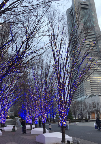 いつもここを通るときは日中なのでライティングの中を行くのは初めてで、二人でキレイキレイと何度も歓声をあげました。