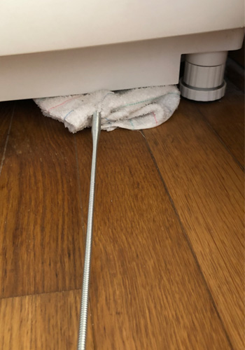これは先でヘドロを掴んで掻き出す棒ですが、今回はバットの縁を掴んで引き出したり、雑巾を差し込んでふいたりと大活躍。