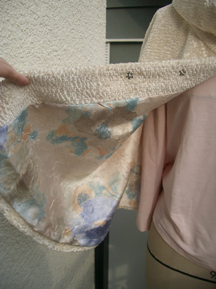 そこで春の野原のように美しいイタリア製のサテンを使いました。これで春先の寒さも大丈夫!