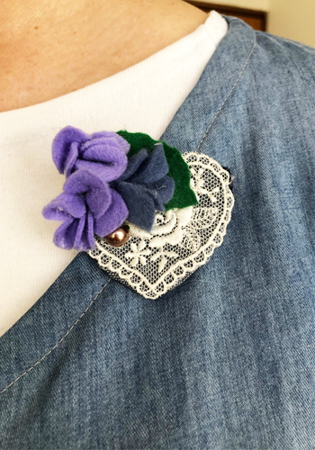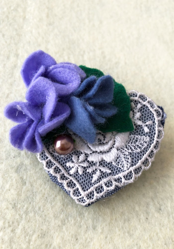 手持ちのレースやビーズと合わせてブローチにしました。