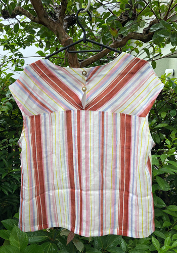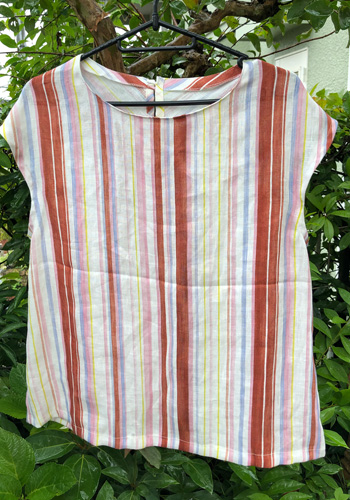 リネンの生地でフレンチスリーブのブラウスを作りました。