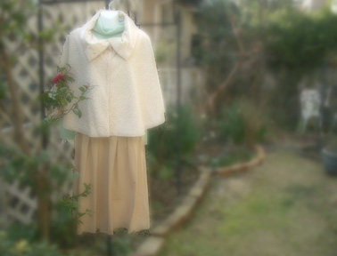 アストラカン風のケープをはおって写真に収めてみました。春はもう、すぐそこですね。