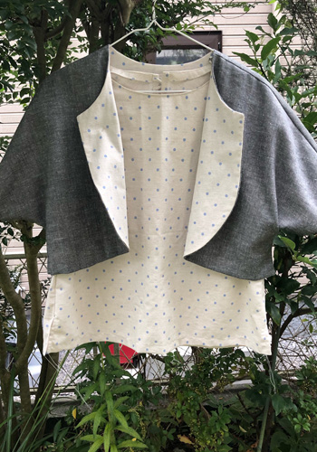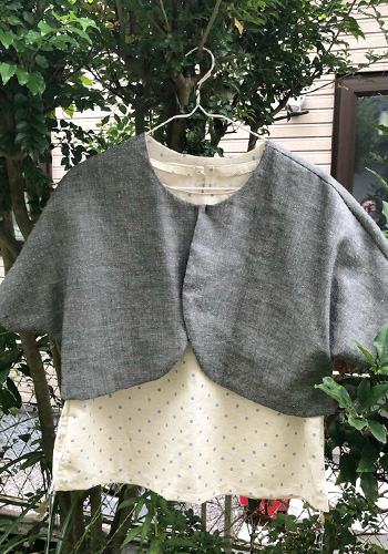 そこでその上にぱっと羽織れるものということで麻のボレロを作りました。