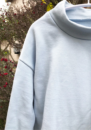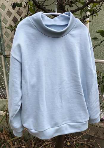手首、衿ぐり用のリブ地がなかったのでとも布で作りましたがすこしゴロゴロするので次作はTシャツのようにリブなしで作ろうと思います。