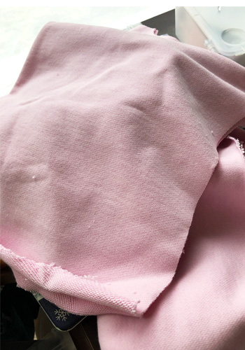 スウェット生地は裏毛といって、裏がループになっていて少しカットするだけでポロポロ大量の糸くずごみが出るのが困りもの。