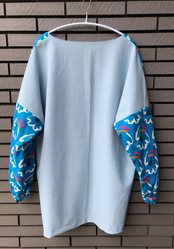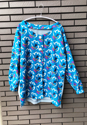 手持ちの布で作ったので、前後の組み合わせがなんとも激しいのですが、朝ご飯を作るときにこれを着ればパッと目が覚めて、やる気モードに切り替え必至。