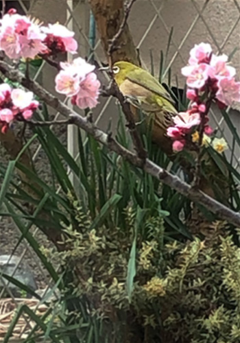 ちゃっかりメジロがムシャムシャ役目を引き受けてくれています。