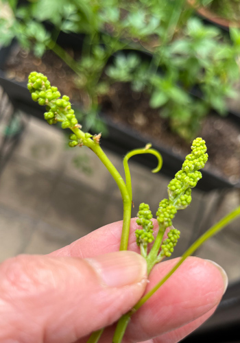 夏が以前より暑くなっている昨今、ブドウ生産者に勧めている方法ですが、出来たばかりのブドウの赤ちゃんをもぎ取るのは勇気が要りますね。