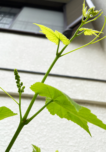 今年は植物の生育が良く、庭のブドウもすくすく育っています。