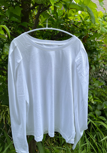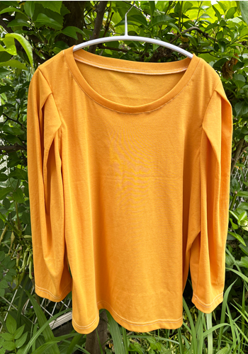 なぜ作りたかったかというと、袖にたっぷりとタックがとってあり、着るとふんわりふくらむからです。