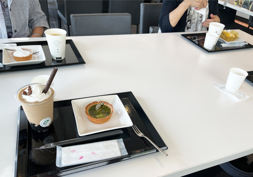 ここで私がオーダーしたのはコーヒーゼリーフラッペと小さな抹茶タルト。