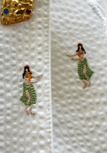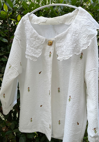 かっぽう着は襟なしが良いのですが、ガウンは襟がないと寂しいので、これまた30年ほど前の付け衿のストックがあったので縫い付けました。