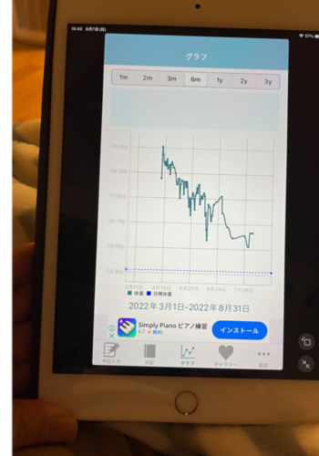 スマホにダイエットのアプリを入れて、毎日体重を記入するのも習慣になりつつあります。