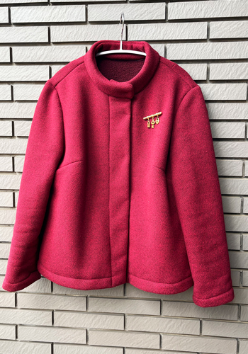 厚手の生地だったので襟、見返しなど重なる部分はかなりぷっくりしてしまい、針を太い9号に替えても縫いにくかったです。
