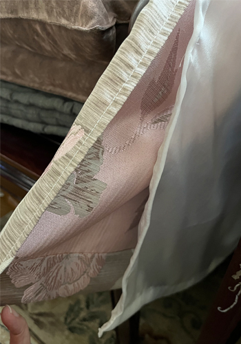 4メートル1000円という格安のシルクを裏に使ったので、厚みが違い過ぎて縫い目がびろびろになりましたが見えないところなのでこれでよし。