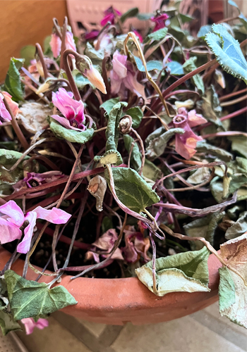 幸いシクラメンは球根なので、根元や根っこはまだまだ大丈夫そうで…。