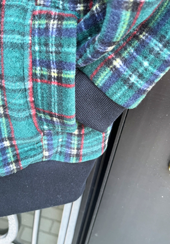 紺色と緑色のチエックで、フリースとしては少し珍しい色です。