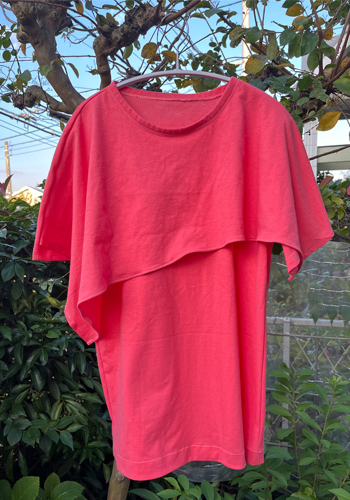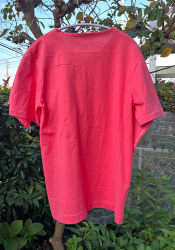 サンゴ色のコットン天竺の生地を買ったのでTシャツを作りました。