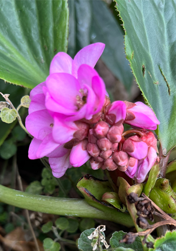 そんな中、文字通り雪の下からヒマラヤユキノシタが咲き始めました。