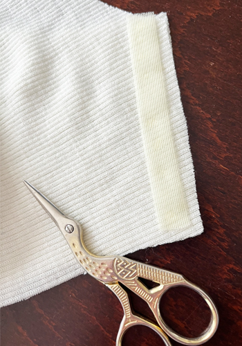 ニットは縫っていくうちに少しづつ伸びてどうしてもズレが出てくるのですが、こうやって貼って全く伸びないのは初めての感覚で、肩のような絶対にずらしたくない部分には、本当に便利だと思いました。