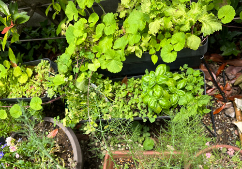 ここは朝日だけ当たる北東の角ですが風通しが良いのでハーブには最適のようです。