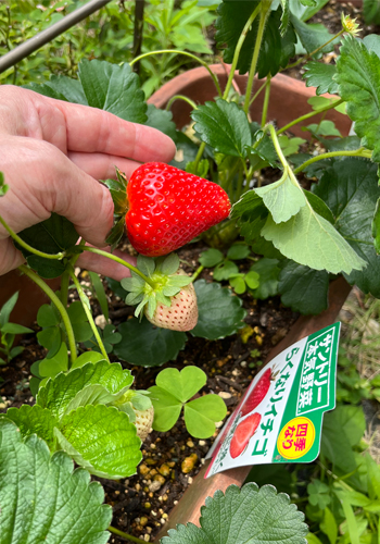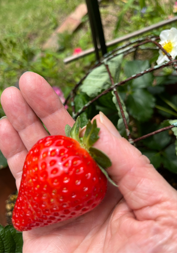 先日のイチゴの苗ですが順調に育ち、3つ目を今日収穫。