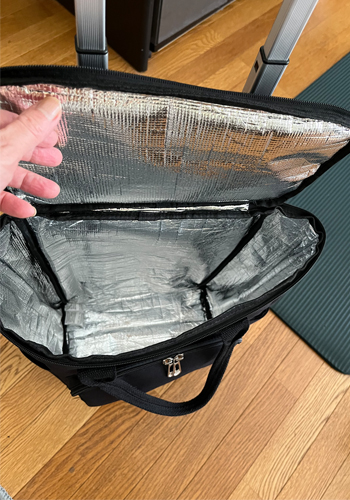 内側全体が保冷仕様になっているので大きな保冷剤1つで間に合いそうです。