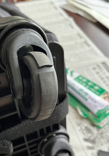 レビューを見ると車輪の音が少しうるさいとのことだったので、これもレビュアーさんのお勧めどおり、生ゴムを車輪に貼ったら騒音も解消です。