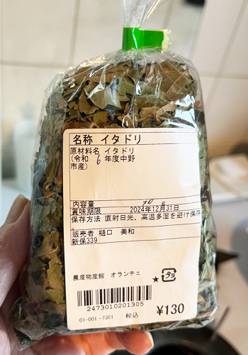 この包みを見つけた時「やっと見つけたー」と思ったのですがお茶用に砕いてあるのでやはり葉っぱの形はわからずじまいですね。