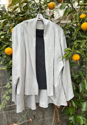 今回、ウールのニットで作ったところ重みが体に馴染んで、ほどよい落ち感がでてよかったです。
