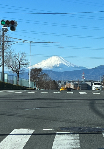 いつもながら大きくなったり小さくなったりの富士山マジックは不思議でたまらないけれど、それにしてもこの時期の雪をかぶった迫力ある富士山は真冬の今しか見られないので、ここを通るのが楽しみ。